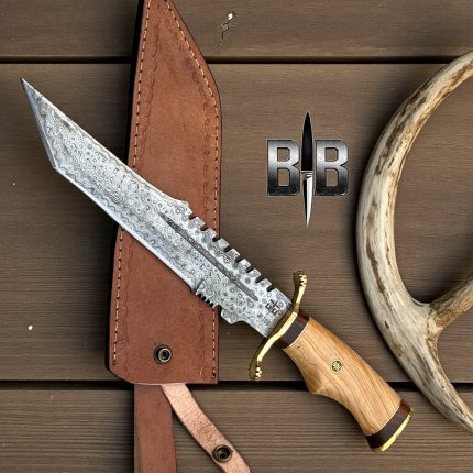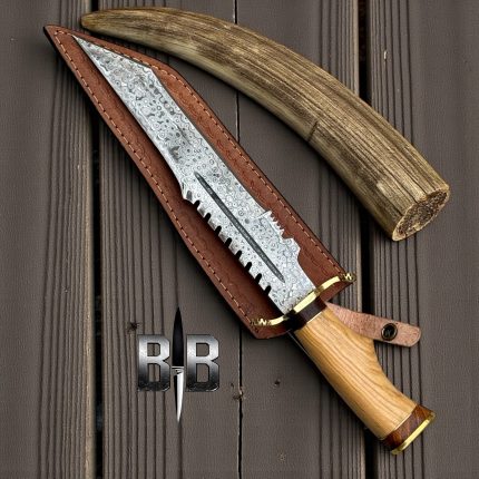 Custom made tento bowie blade raindrops pattern Damascus steel blade