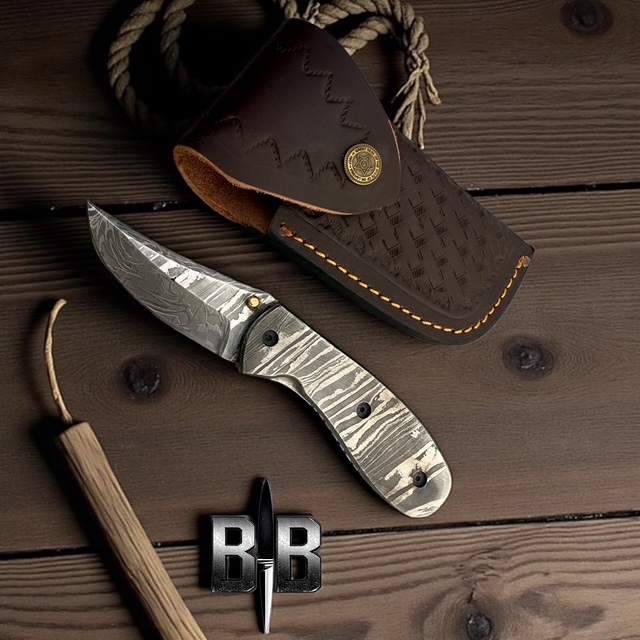 Full Damascus steel folding knife